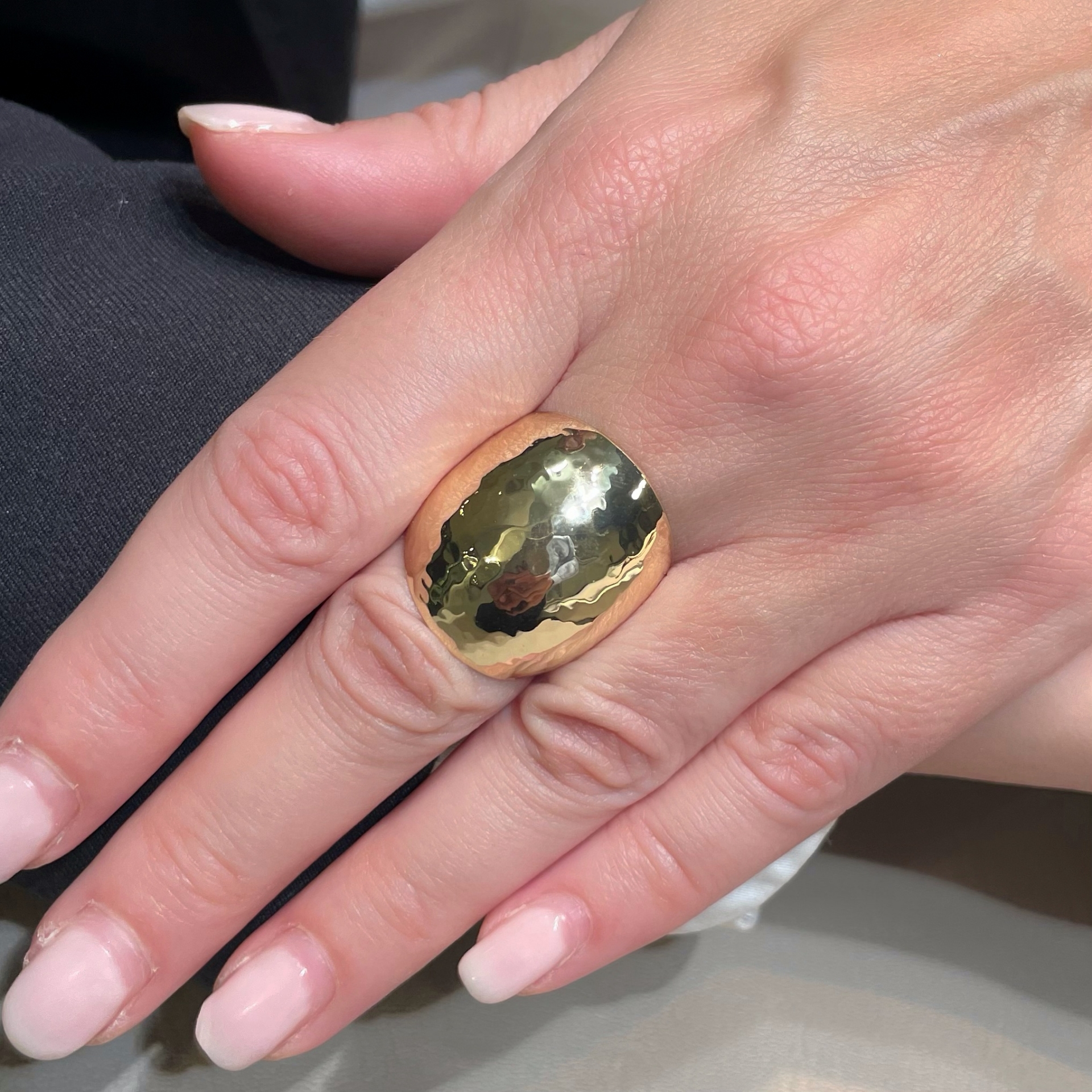 Collezione Nuova Retrò. Anello in argento dorato a lastra con lavorazione martellata.