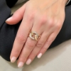 Anello a maglie piatte intrecciate in argento rosa e zirconi. Gambo aperto per misura regolabile