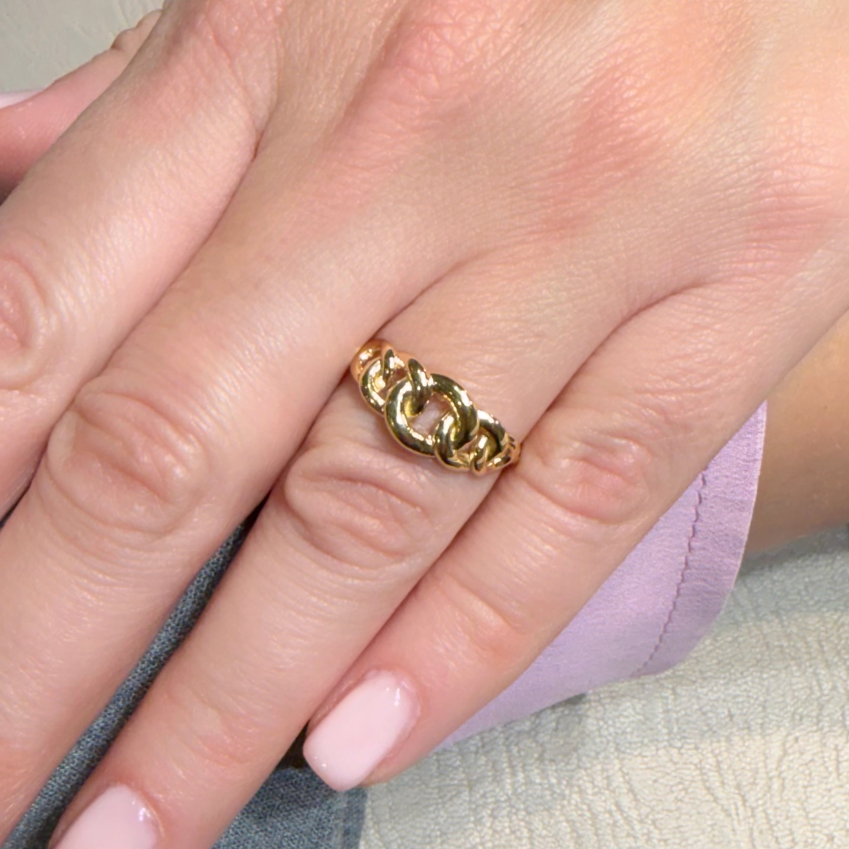 Anello in oro giallo sottile con maglie grumettes a degradare.