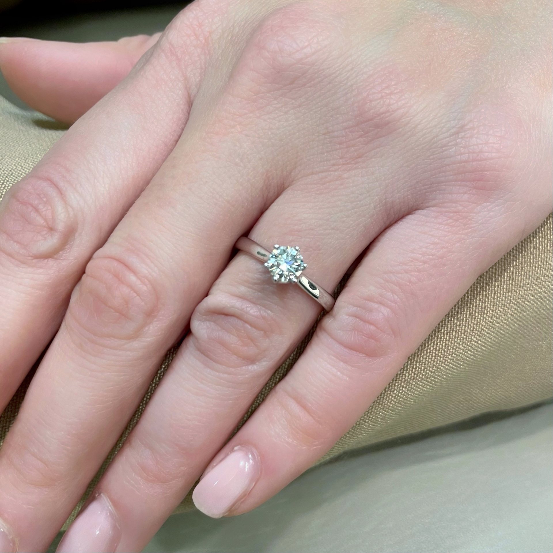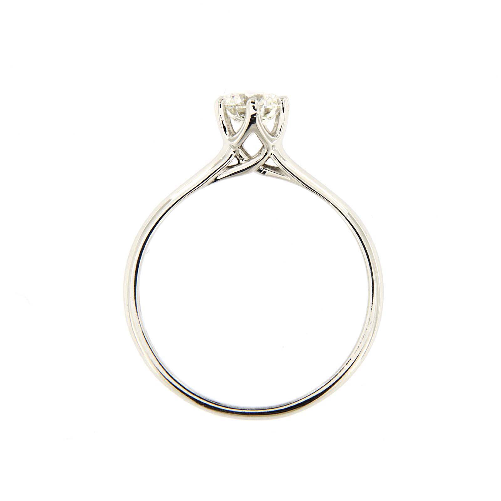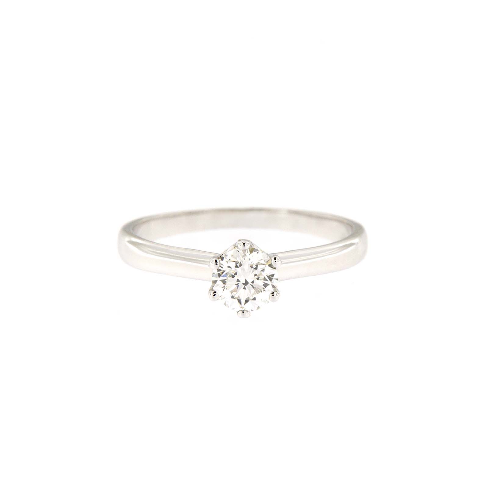 Anello in oro bianco con incassato diamante taglio brillante su castone a 6 punte.