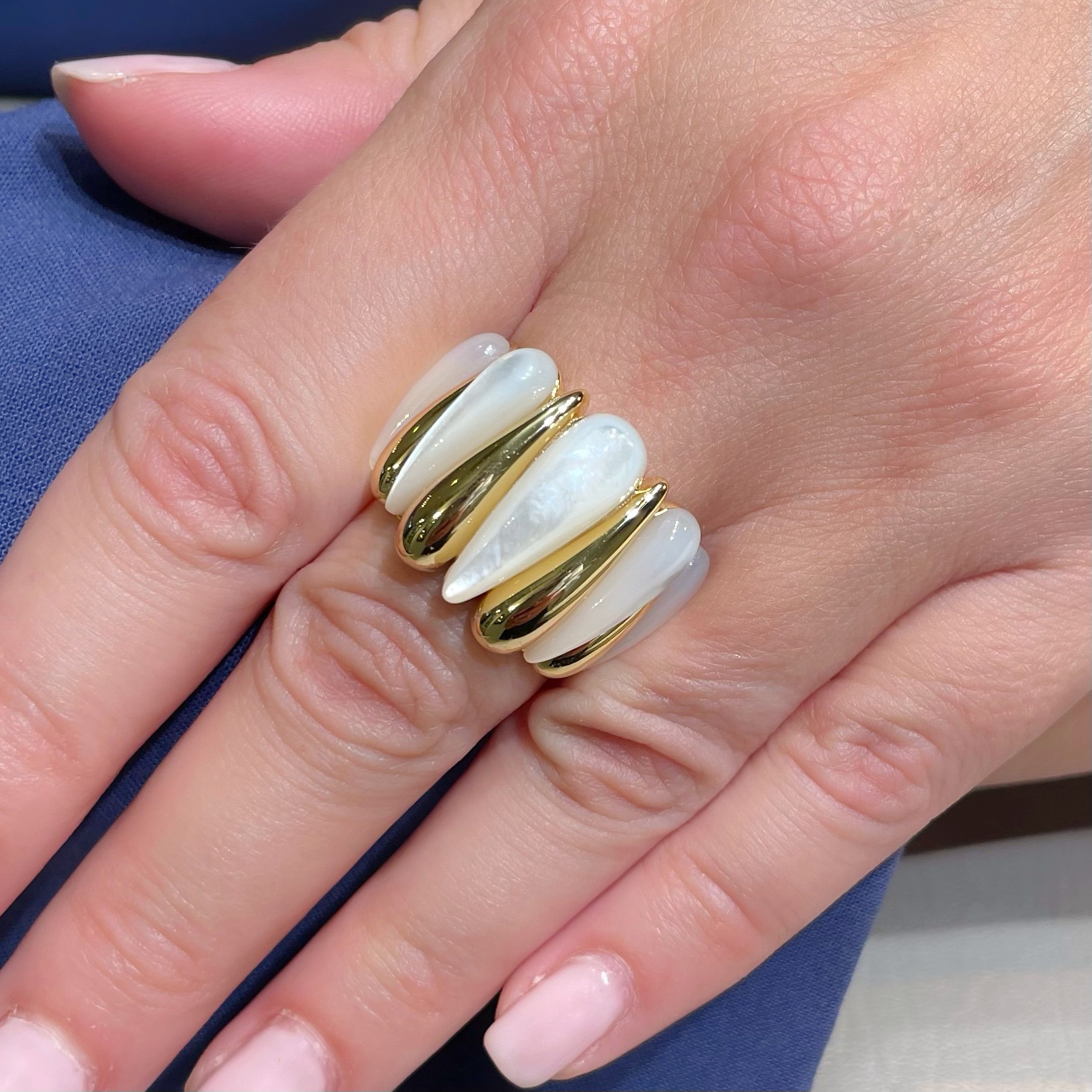 Anelloa fascia larga in argento dorato con inserti in madreperla.