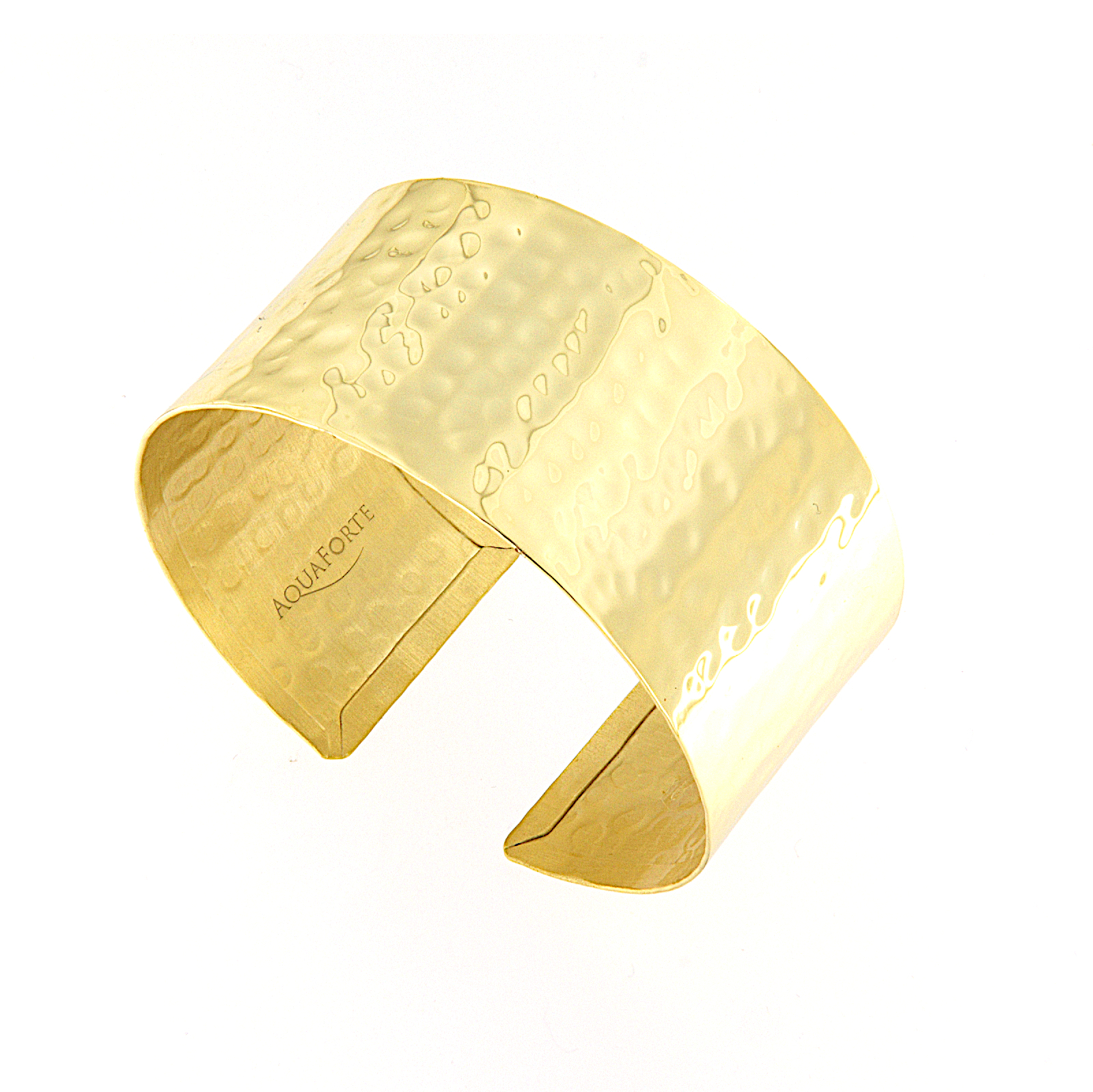 Collazione nuova Retrò. Bracciale largo a schiava in argento dorato con lavorazione martellato e lucido.
