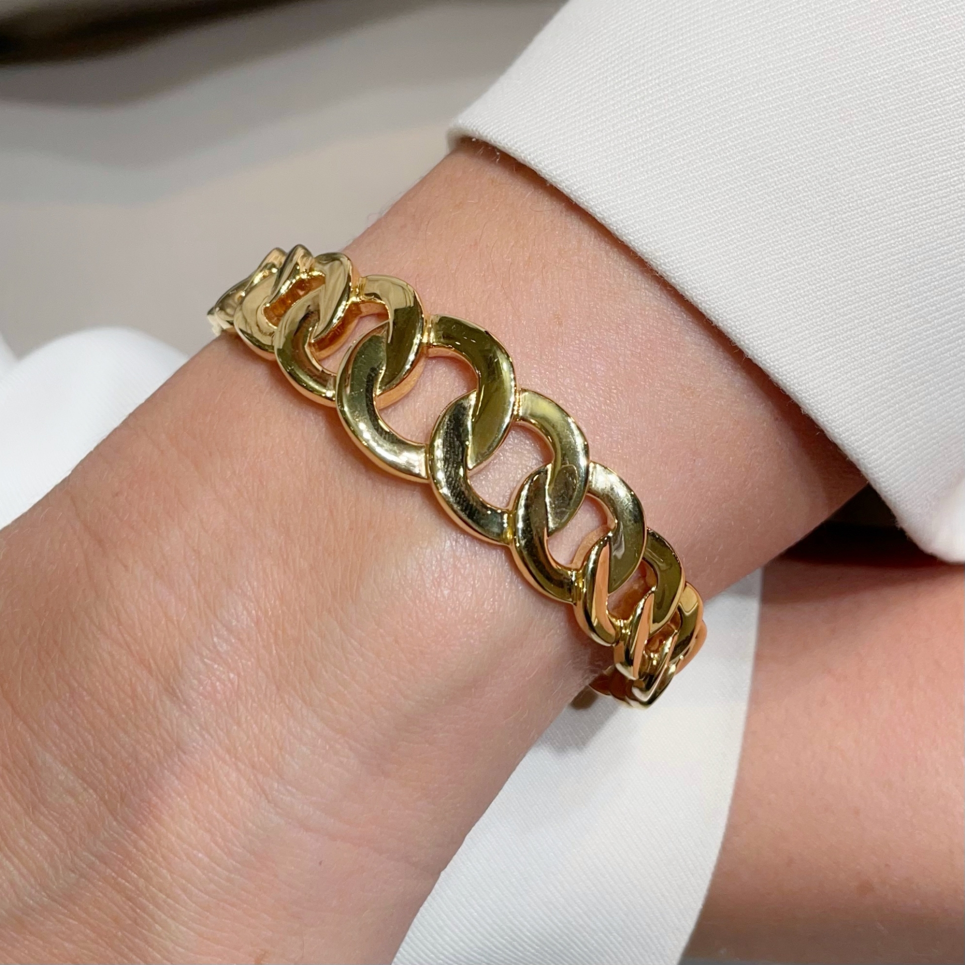 Bracciale rigido in oro giallo a maglia grumette a degradare.