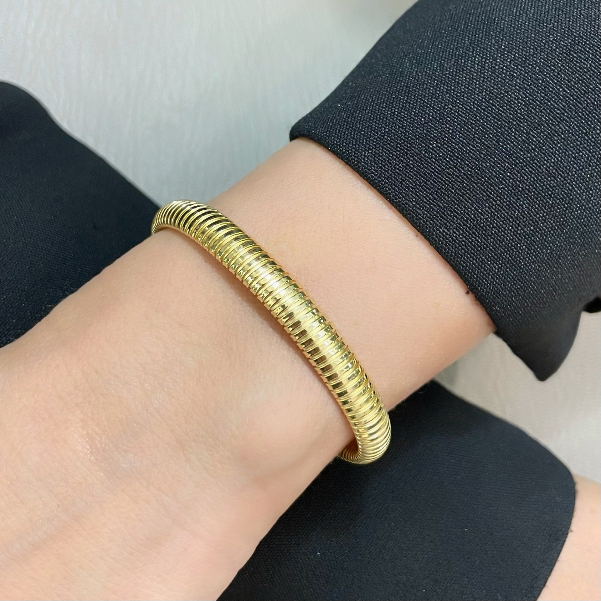 Bracciale maglia tubogas in argento dorato con chiusura a cassetta.
