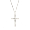 Croce in oro bianco con incassati diamanti taglio brillante su griffes. Girocollo in oro bianco maglia spiga di cm. 45