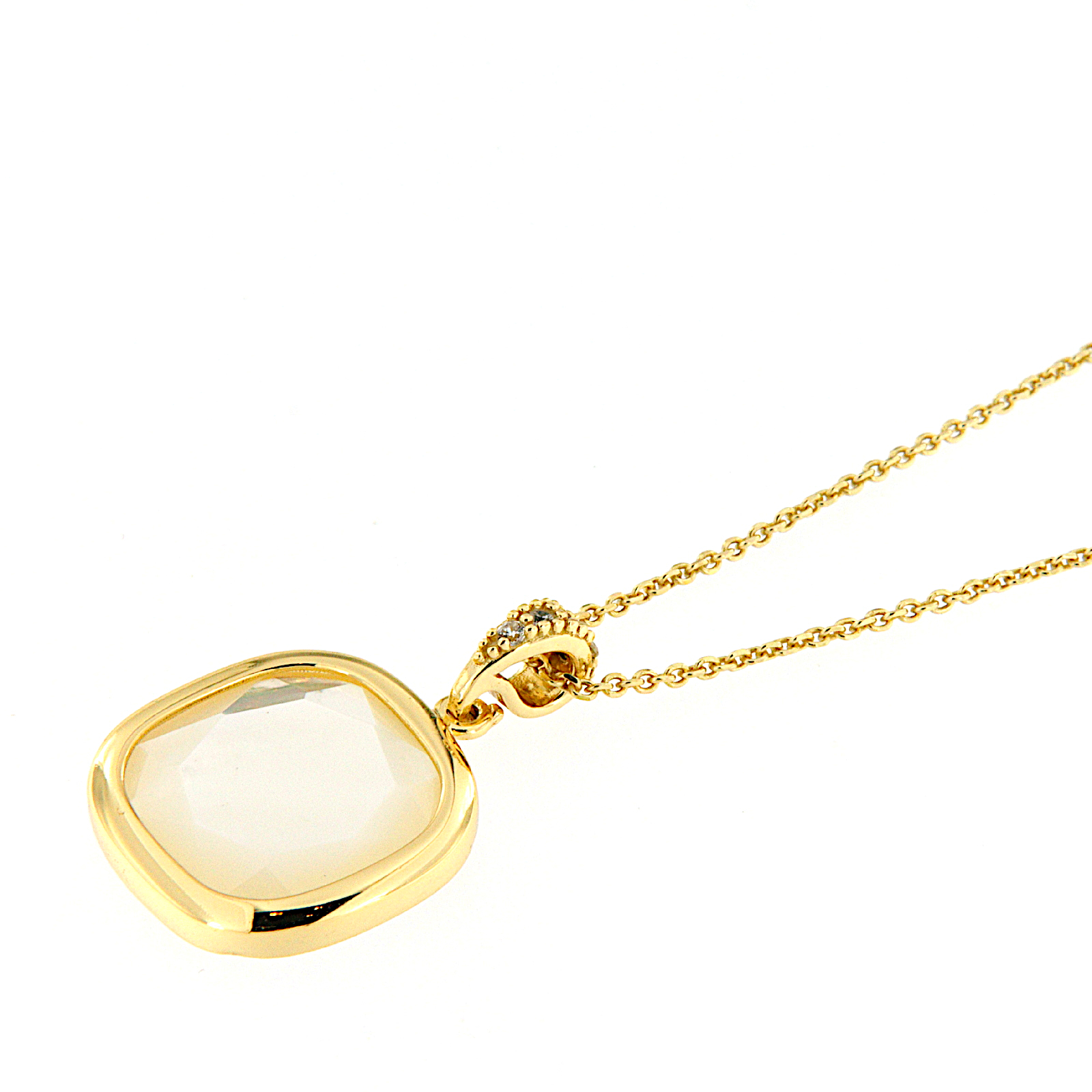 Collezione Mignon - Collana con pendente squadrato in argento dorato, madreperla e zirconi. girocollo con catena ad anelli finale per regolarne la lunghezza.