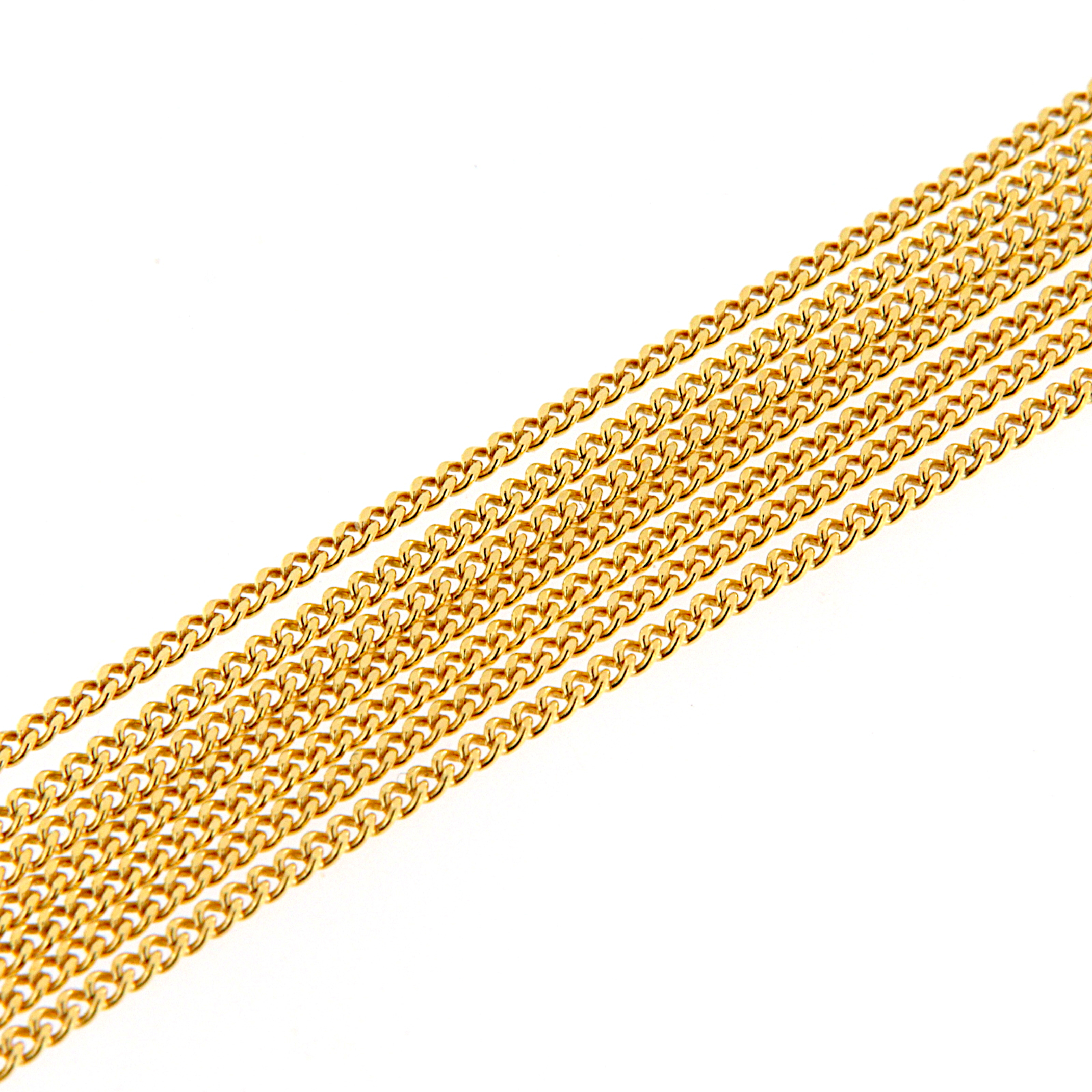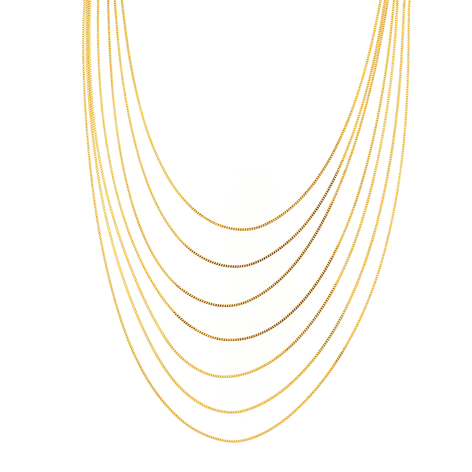 Collana lunga a sette fili in argento dorato. chisura con catena ad anelli finale per regorare la lunghezza