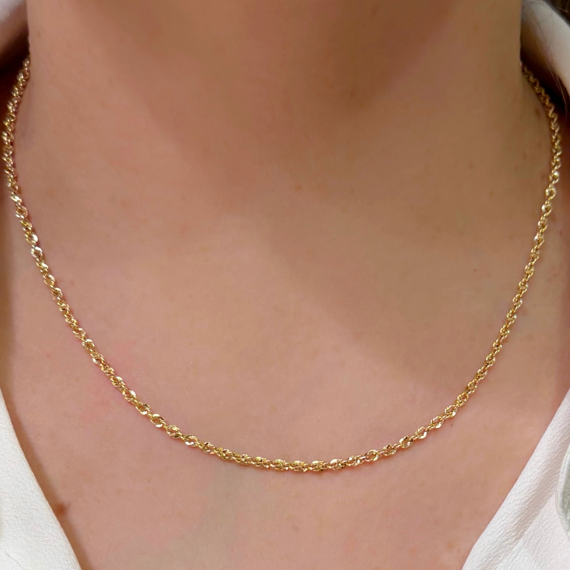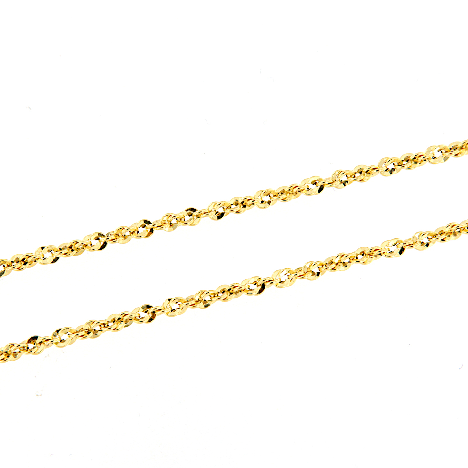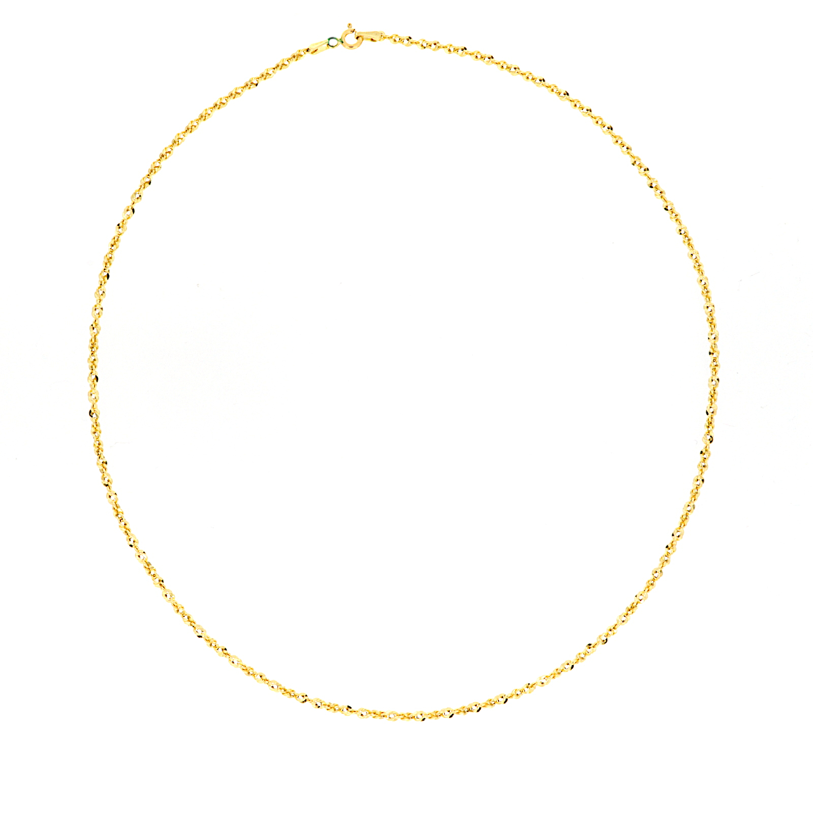 Collana a girocollo in oro giallo con maglia tubolare a corda sfaccettata.