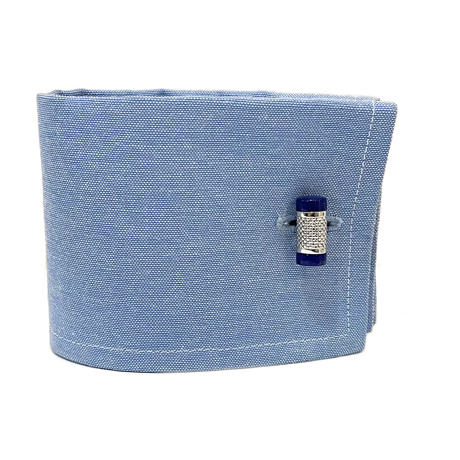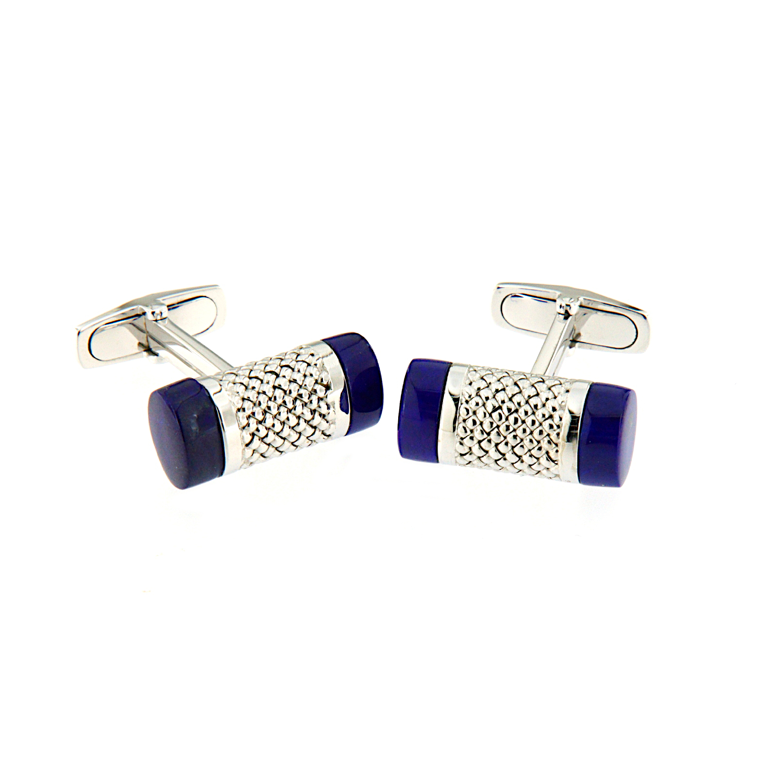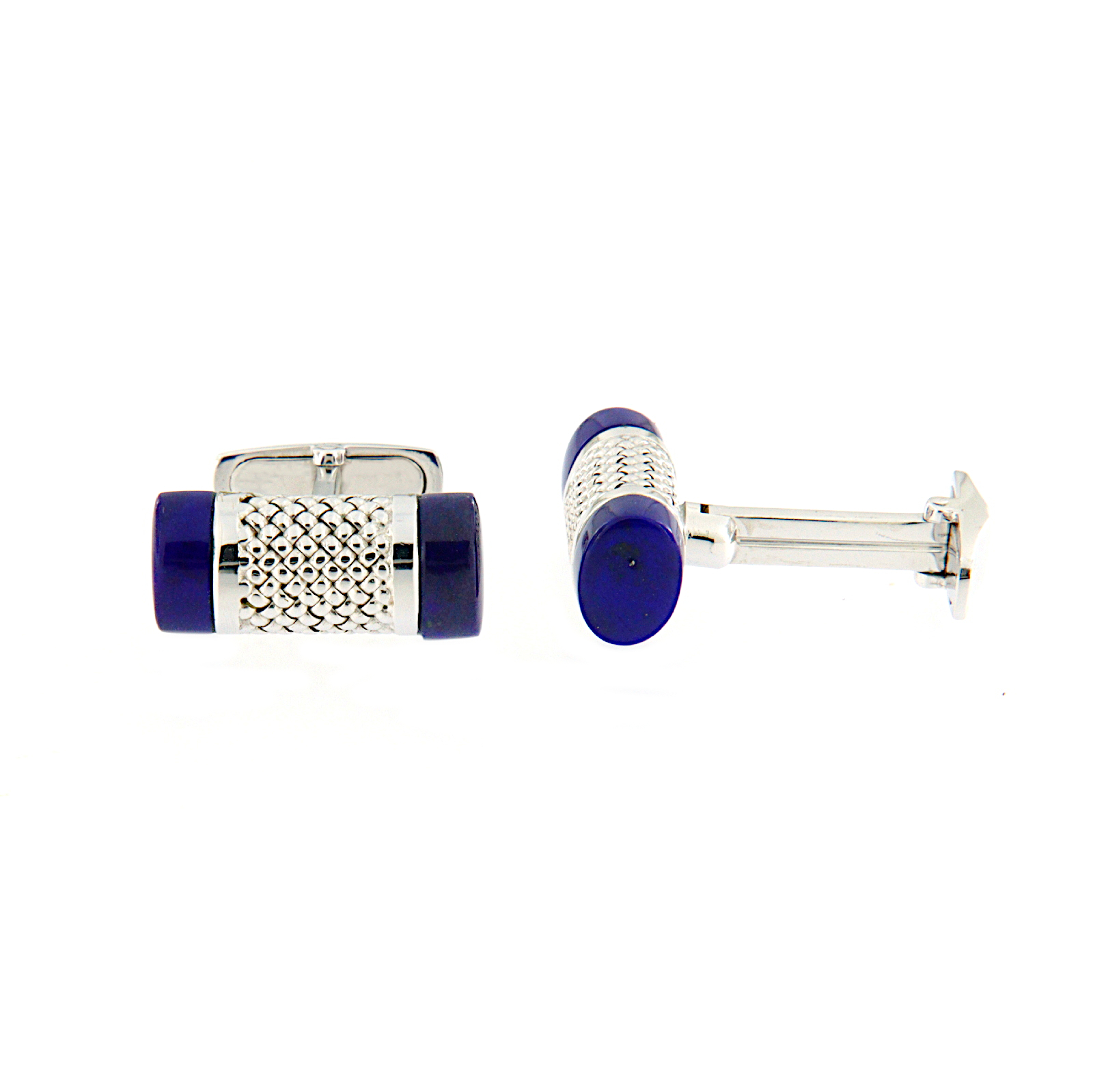 Feremapolsi in oro bianco con lavorazione guillochè e lapislazzuli .