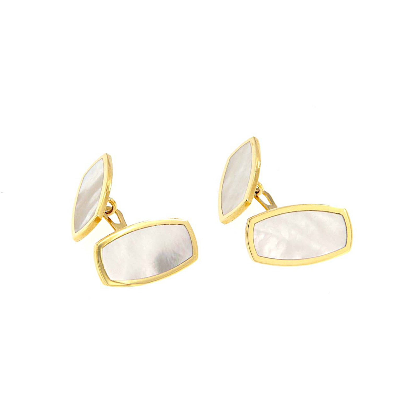 Gemelli sagomati in oro giallo e madreperla