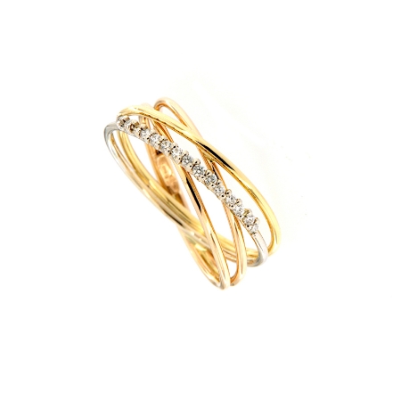 Orecchini nei due colori dell'oro a doppia fila con diamanti taglio brillante e liscia. Come avere due cerchietti diversi, in un unico orecchino .