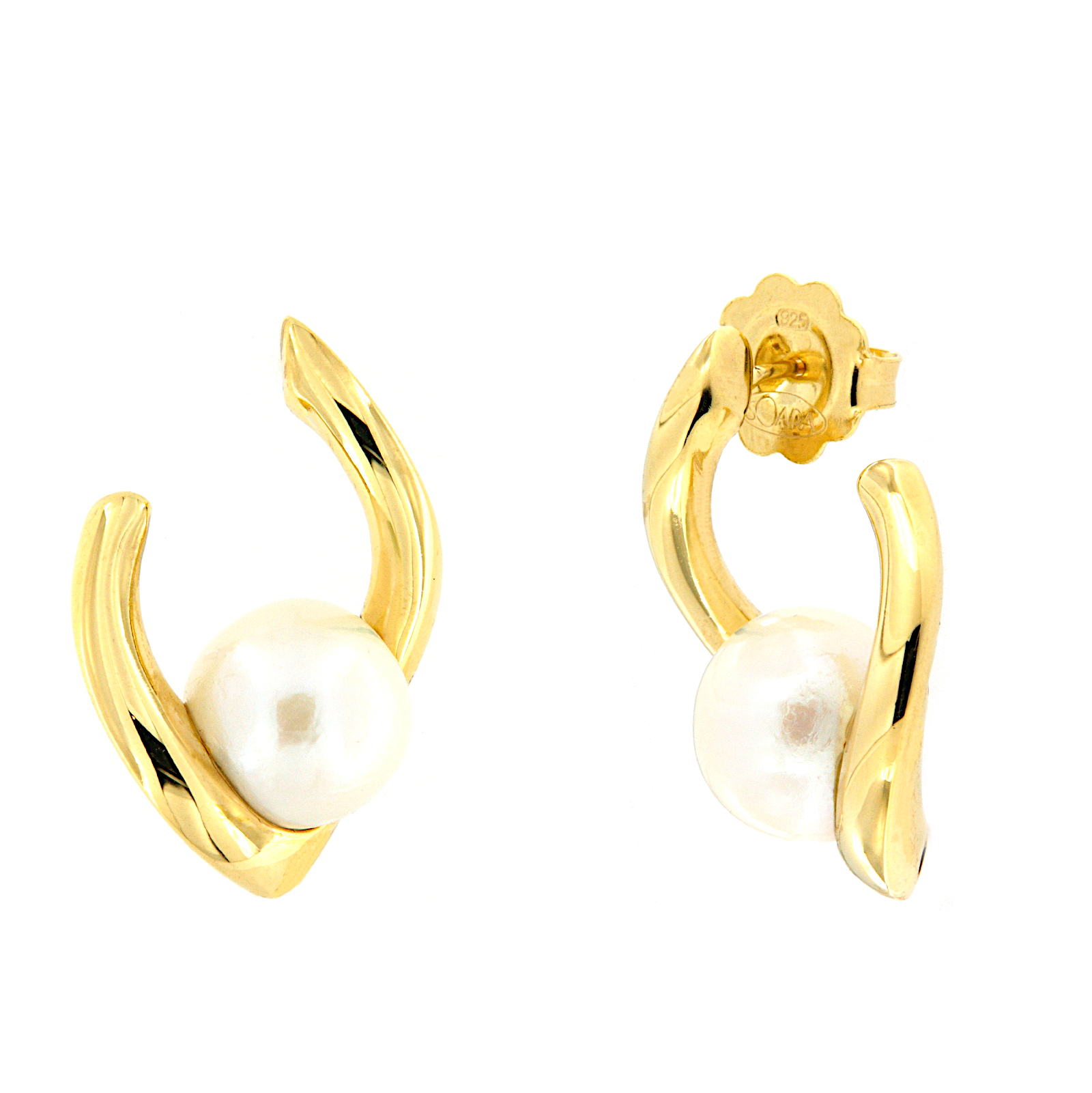 Orecchini a goccia in argento dorato con perla coltivata di acqua dolce centrale.