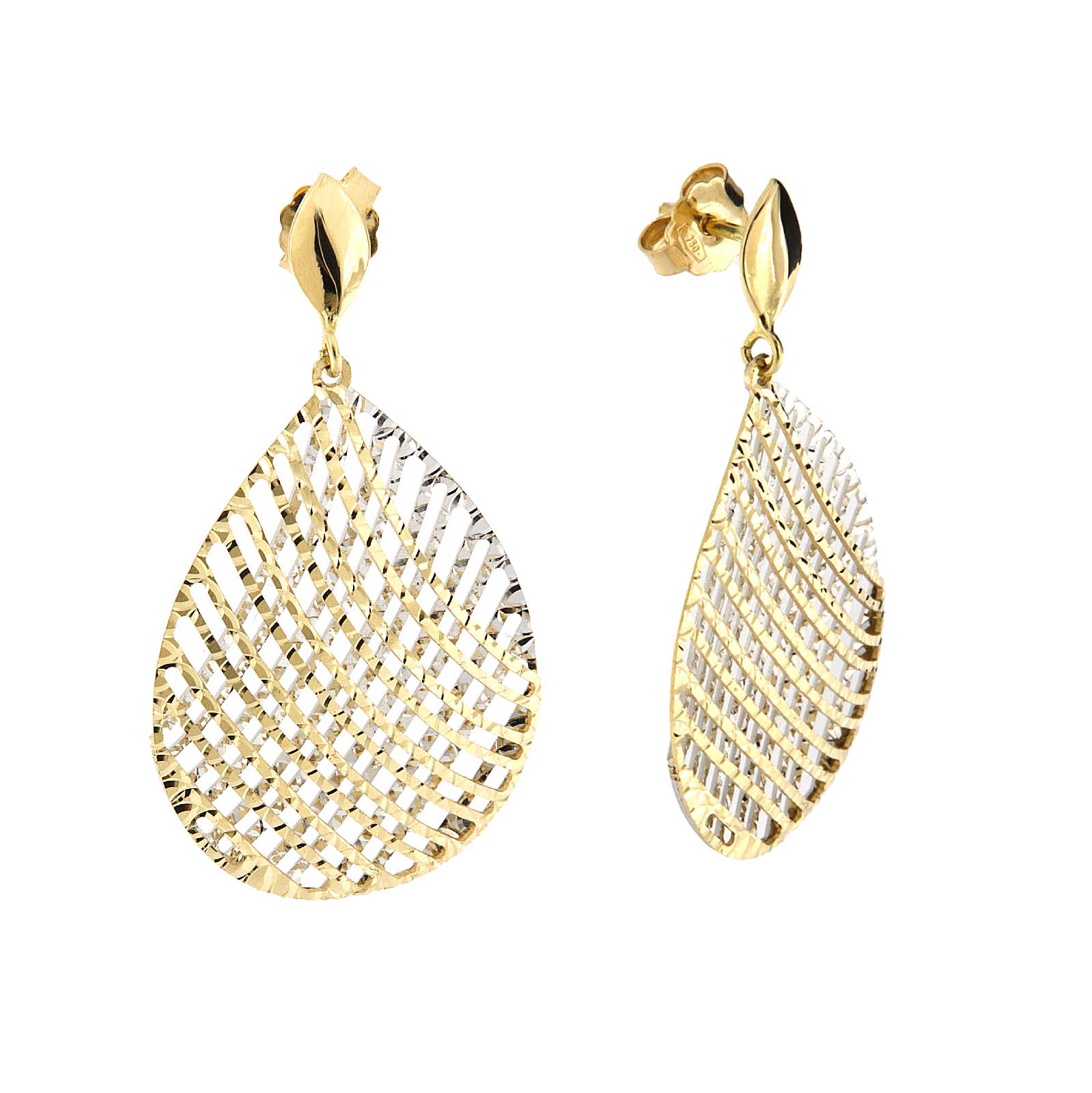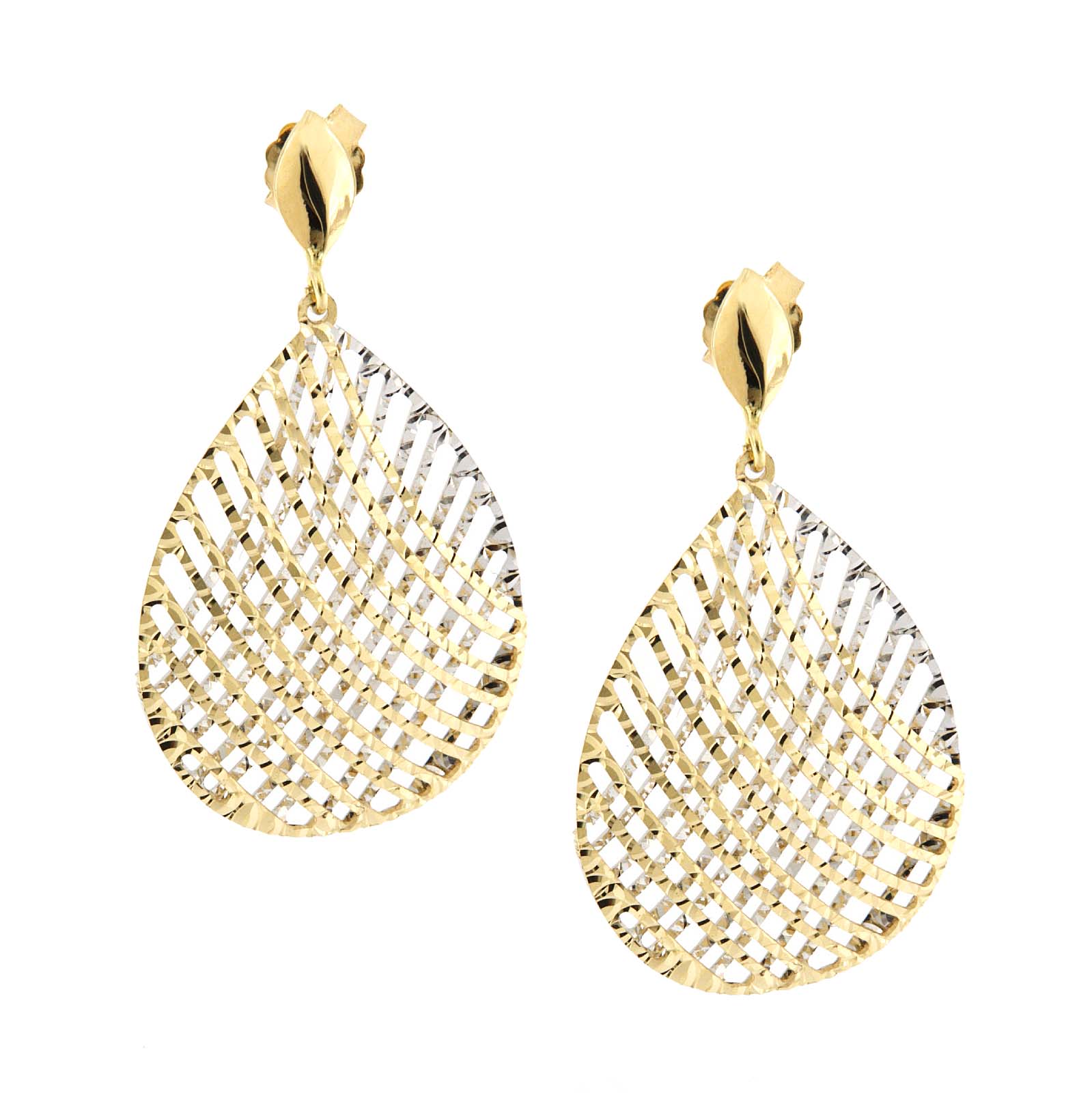 Orecchiniin in oro giallo e bianco con lavorazione a righe sfaccettate. Chiusura perno e vite a pressione.