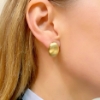 "Aquacaramelle" Orecchini in argento dorato satinato ovali. Chiusura perno e clips.