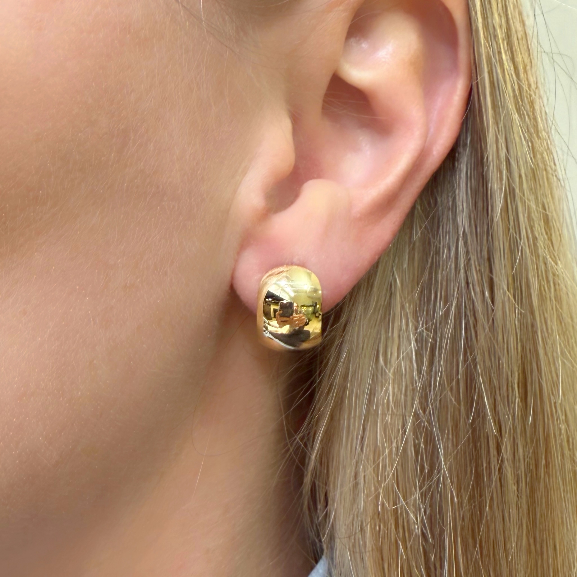 Orecchini a lastra bombata in oro giallo con chiusura ponte retto e clips.