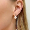 Orecchini in oro bianco con incassati diamanti taglio brillante e perle di coltivazione d'acqua dolce. Chiusura perno e vite a pressione.