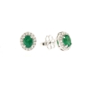 Orecchini in oro bianco con incassati smeraldi taglio ovale contornati da diamanti taglio brillante. Chiusura ponte e vite a pressione.